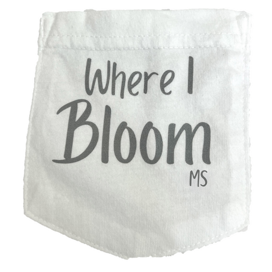 The “Where I Bloom” logo and appropriate state abbreviation are included on the front pocket.