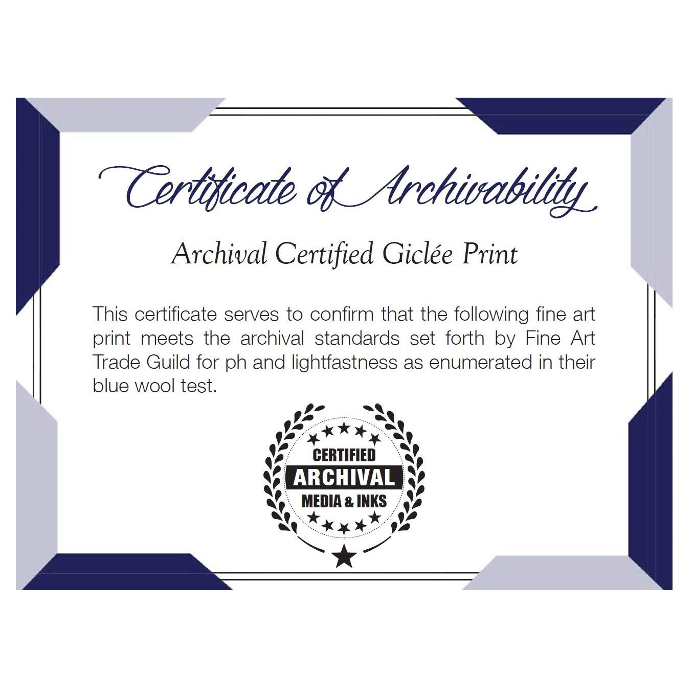 A Giclée fine art print meets the archival standard set forth by the Fine Art Trade Guild for pH and lightfastness. You can expect to enjoy this piece of art for years to come.